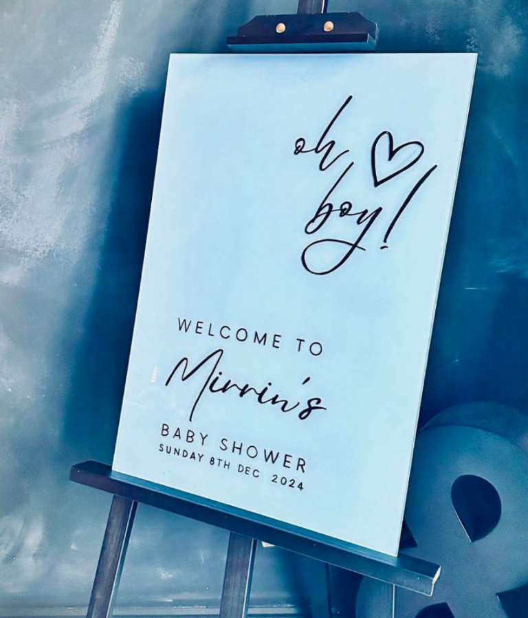 Price includes a rectangular acrylic sign, painted and lettered by hand in a colour of choice.